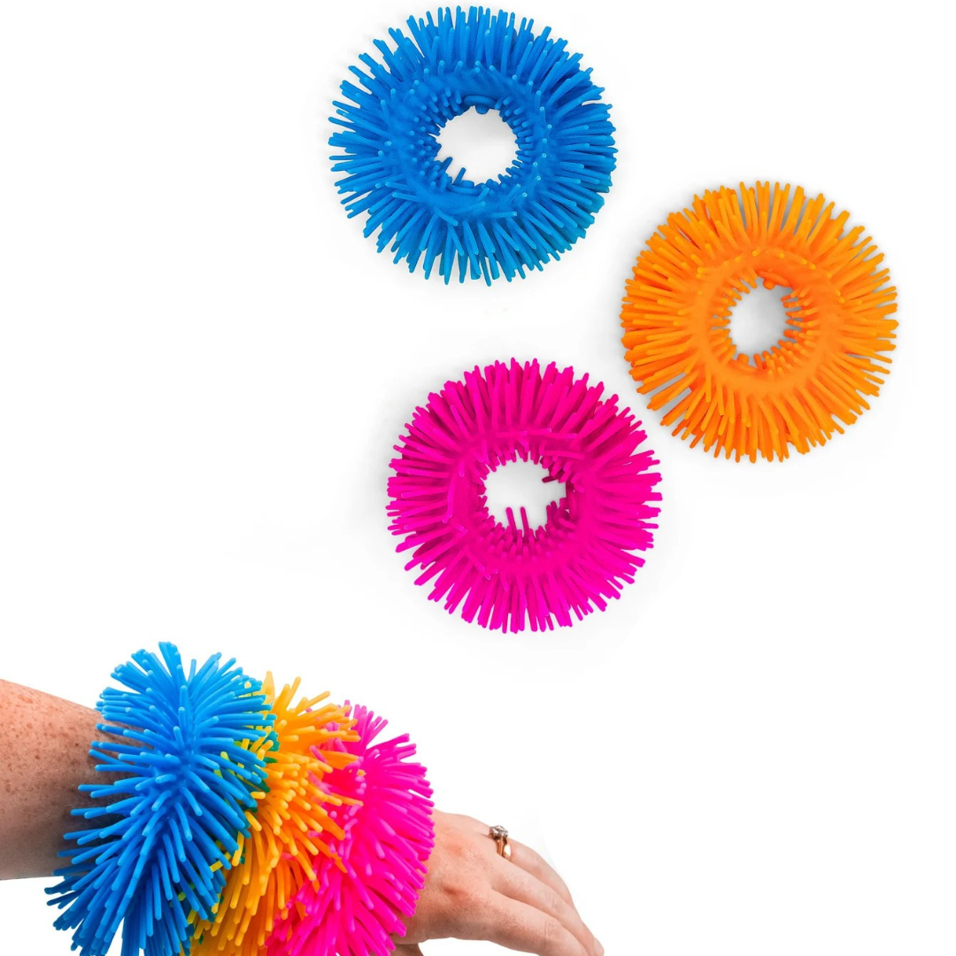 The Wiggly Wristband is a simple but super fun accessory that helps keep fingers busy and hands active, great for restlessness, focus breaks, or just playful fidgeting. Made in bright neon colours (pink, orange, blue), it’s stretchy, wiggly, and visually engaging perfect for kids who love tactile things or benefit from having something to fiddle with while concentrating.